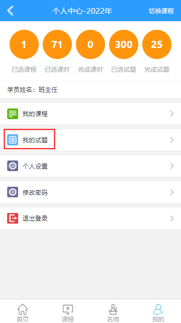 点击“我的试题”进入试题界面,点击“开始练习”即可开始练习相关试题。